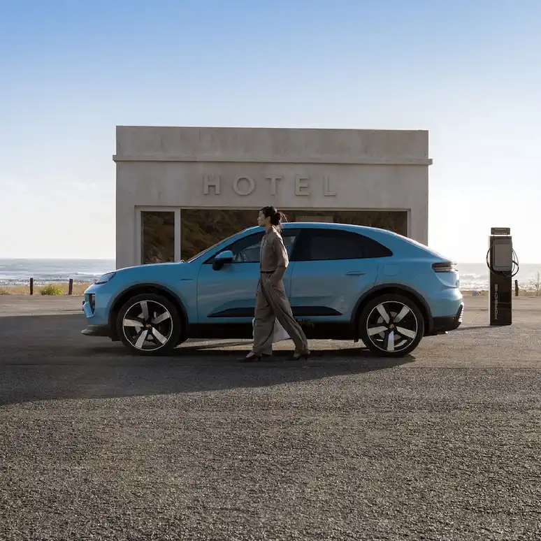 Cayenne E-Hybrid Black Edition: Fuel consumption (weighted) combined (model range): 4.4 – 4.1 l/100 km, Electric energy consumption (weighted) combined (model range): 19.7 – 19.3 kWh/100 km | Taycan: Electric energy consumption combined (model range): 19.4 – 16.7 kWh/100 km, CO₂-emissions combined (model range): 0 g/km